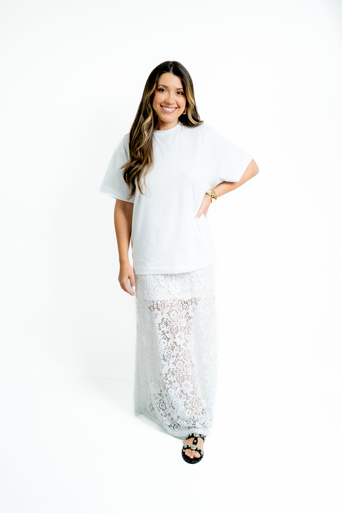 Renda e transparência são algumas das tendências que vem por ai e essa saia reune...
