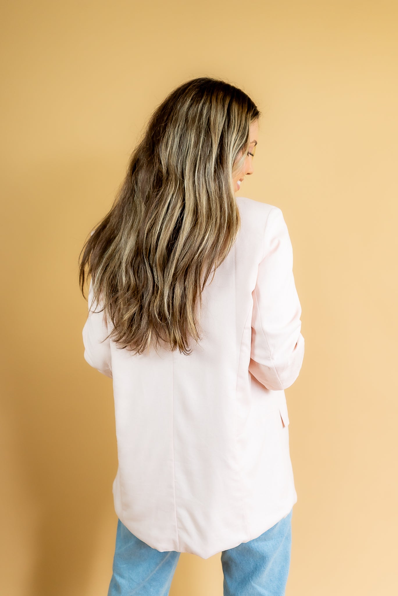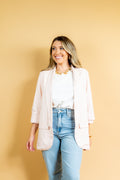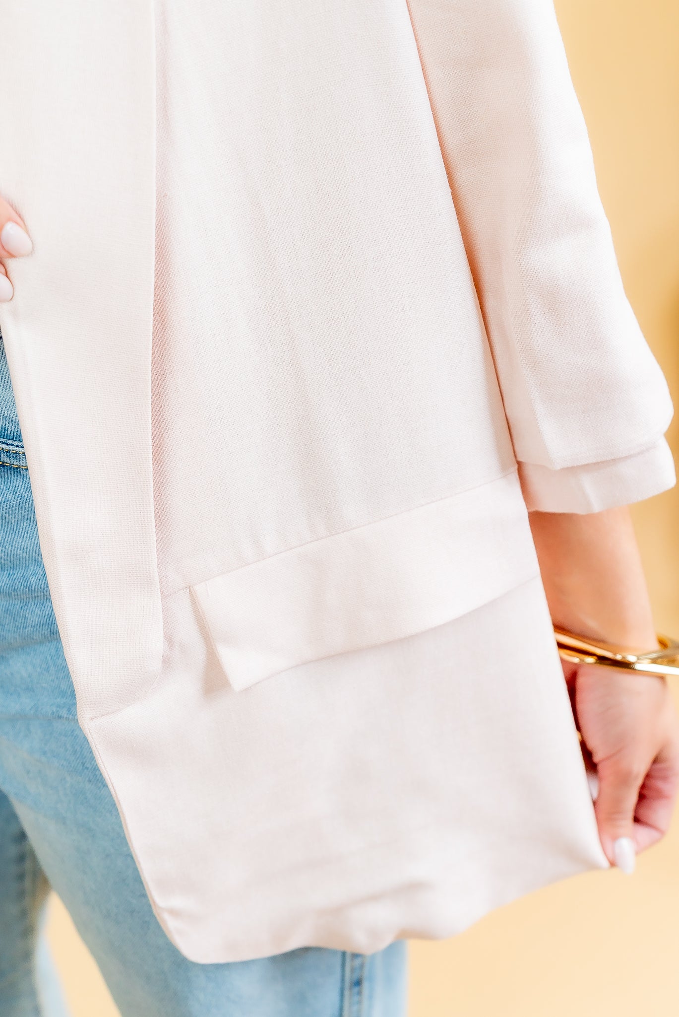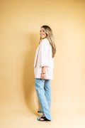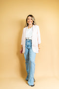 O blazer Maité é todo confeccionado em linho misto em um tom de rosa suave! Não possui botões para fechamento, possui um detalhe de pregas nas mangas que dão um ar moderno e de verão à peça!