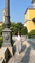 A calça Jéssica é a aquela peça que prova que alfaiataria não precisa ser chata e sempre a mesma coisa! Seu cós deslocado com certeza é o protagonista dessa peça. Possui bolsos faca nas laterais e o detalhe de pregas na parte frontal da peça. Modelagem reta na perna dando um mais um toque de modernidade a peça.