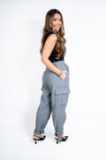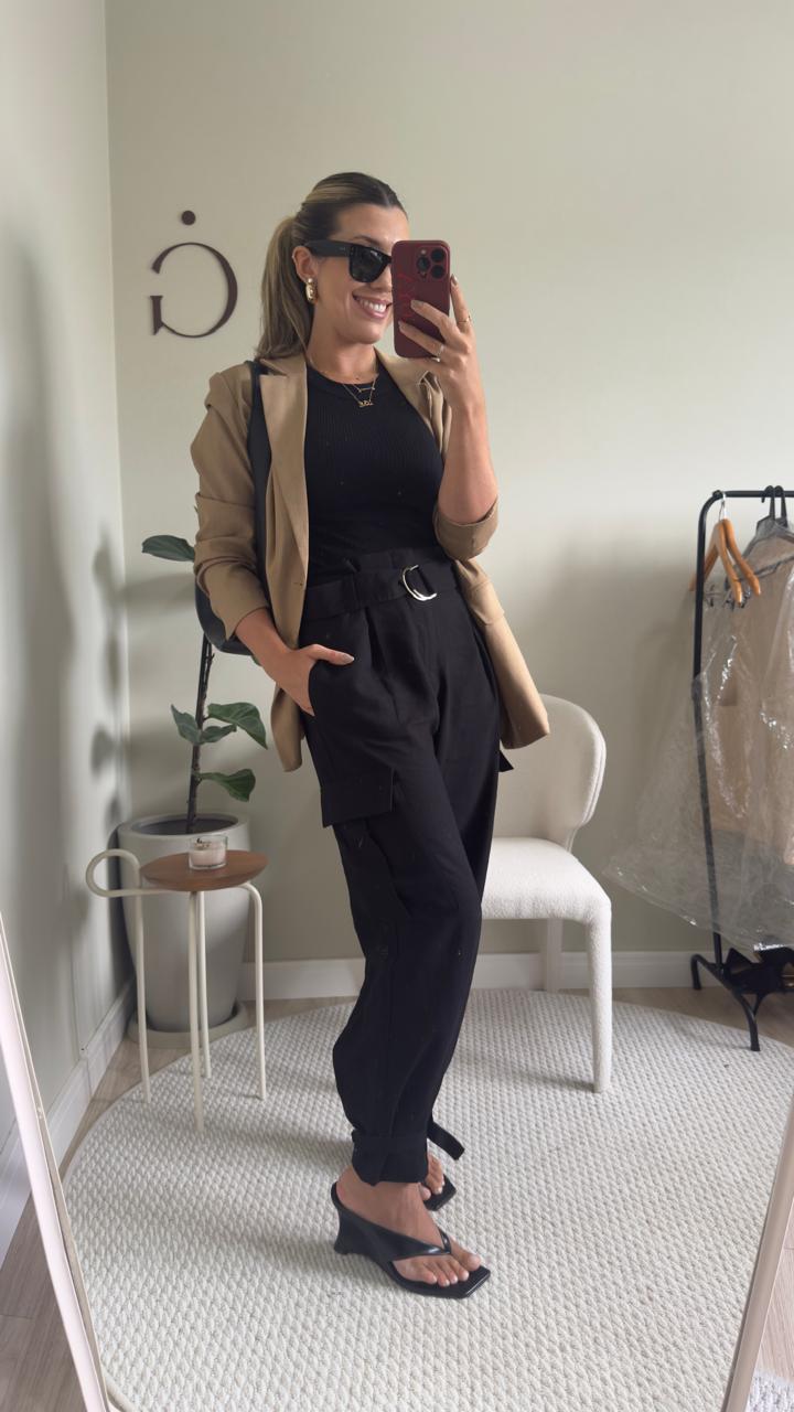 Com modelagem cargo e bolsos utilitários laterais, ela tem aquele ar moderno que a gente ama.