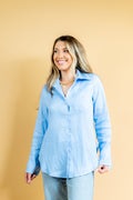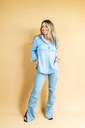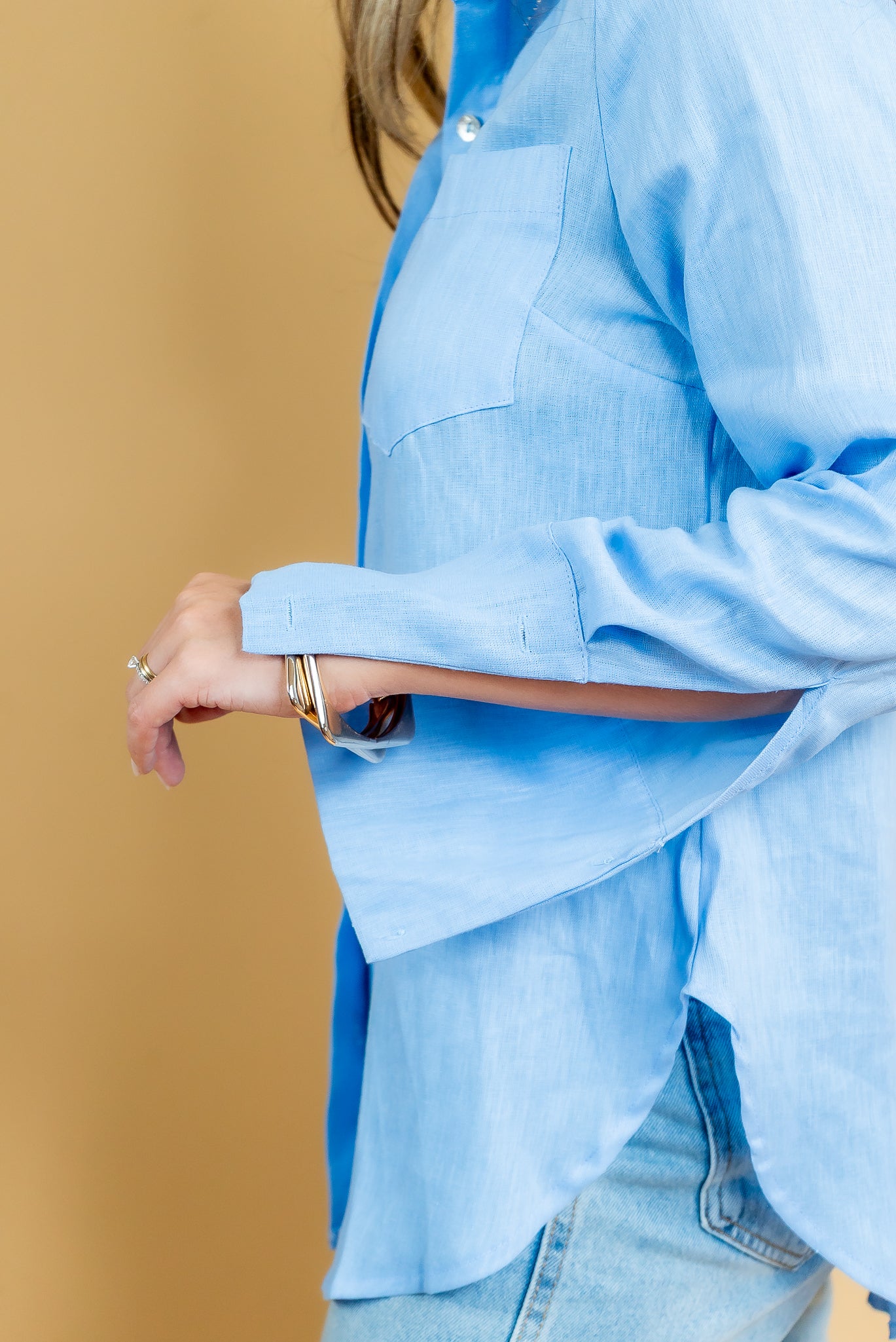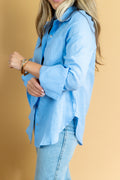 Camisa confeccionada em tecido 100% linho na cor azul! Possui modelagem ampla, fenda na lateral e detalhe de um punho mais alongado! Aposte!