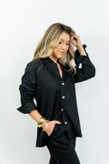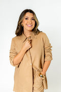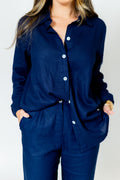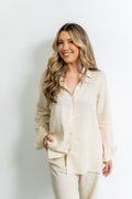 Clássica e atemporal, a camisa Helena é confeccionada em linho misto e possui uma modelagem mais alongada e oversized, possuifechamento frontal em botões de madrepérola! Os punhos são estreitos e também possuem fechamento por botões de madrepérola!