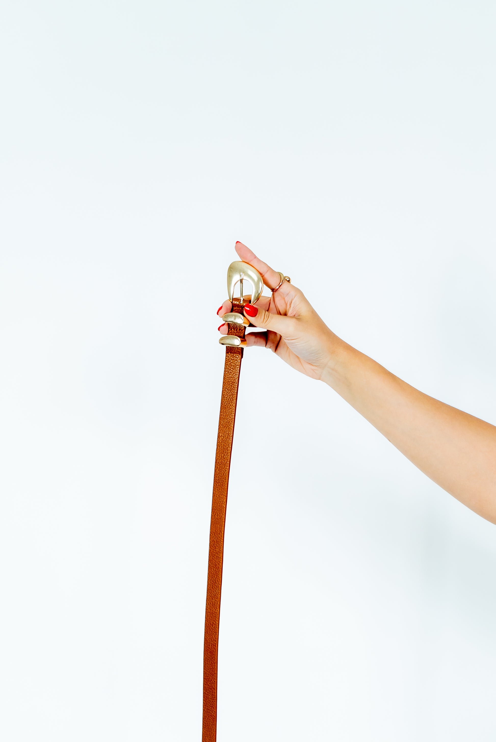 Moderno e Chic, o cinto Gabriella é confeccionado em 100% couro! Possui uma fivela em metal dourado, de forma orgânica, dando um toque diferente à peça! Acessório que pode transformar seu look!