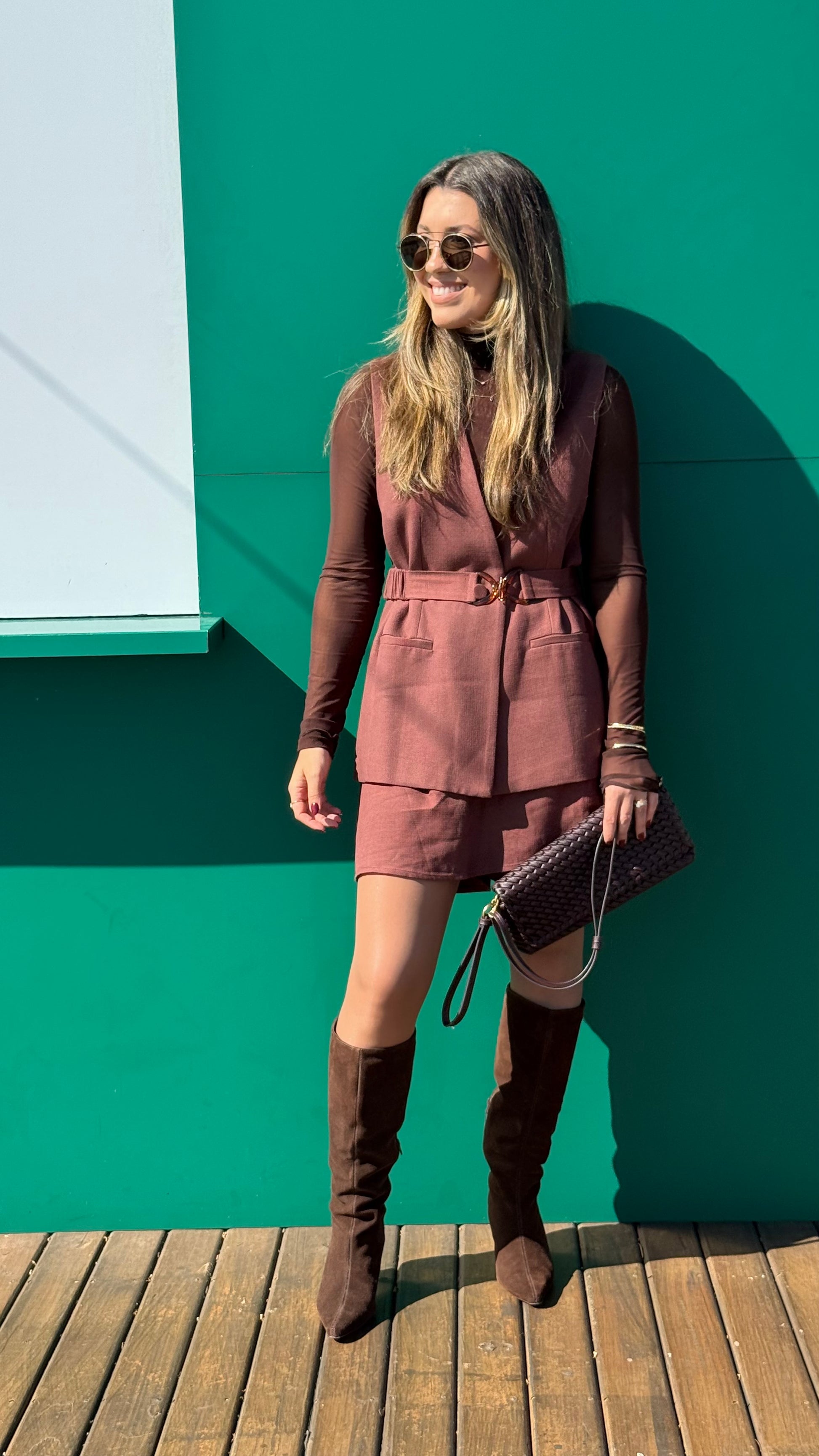 Super moderno, o maxi colete Paula é um colete mais alongado, possui fechamento em botão Único e forrado na parte frontal.