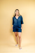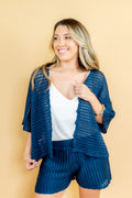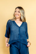 O conjunto Virgínia é todo confeccionado em tricô modal, ponto vazado! O shorts possui forro e cós de elástico! A blusa possui mangas mais alongadas e botões funcionais que te possibiltam usar todo fechado ou aberto como sobreposição!