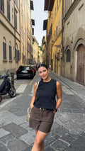 O comprimento é ideal: nem curto demais, nem longo como uma bermuda, perfeito para composições versáteis. E para um toque ainda mais especial, ele vem na cor do ano – marrom, um tom quente e sofisticado que combina com tudo!