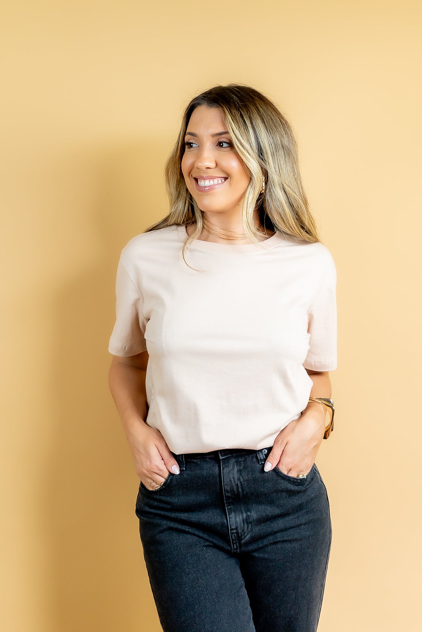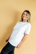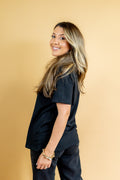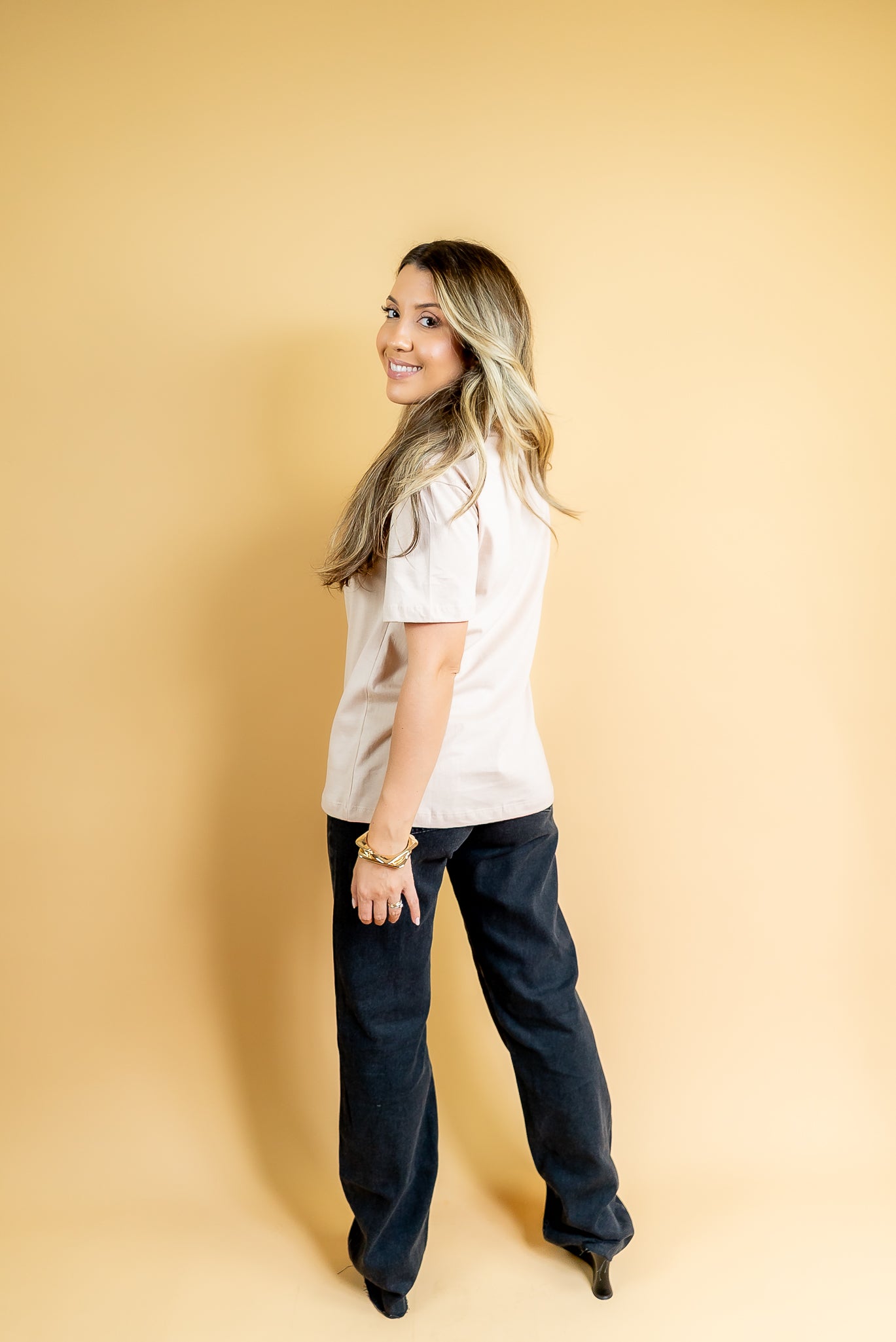 A basiquinha que tem que ter no guarda roupa! Corte moderno e manga levemente mais alongada! Aposte!